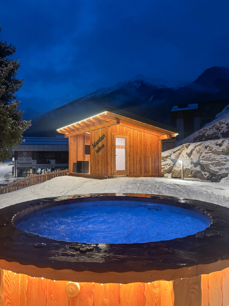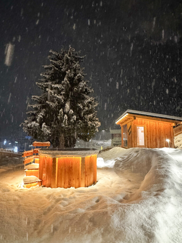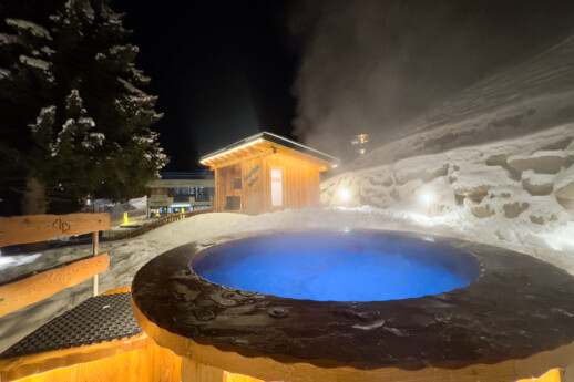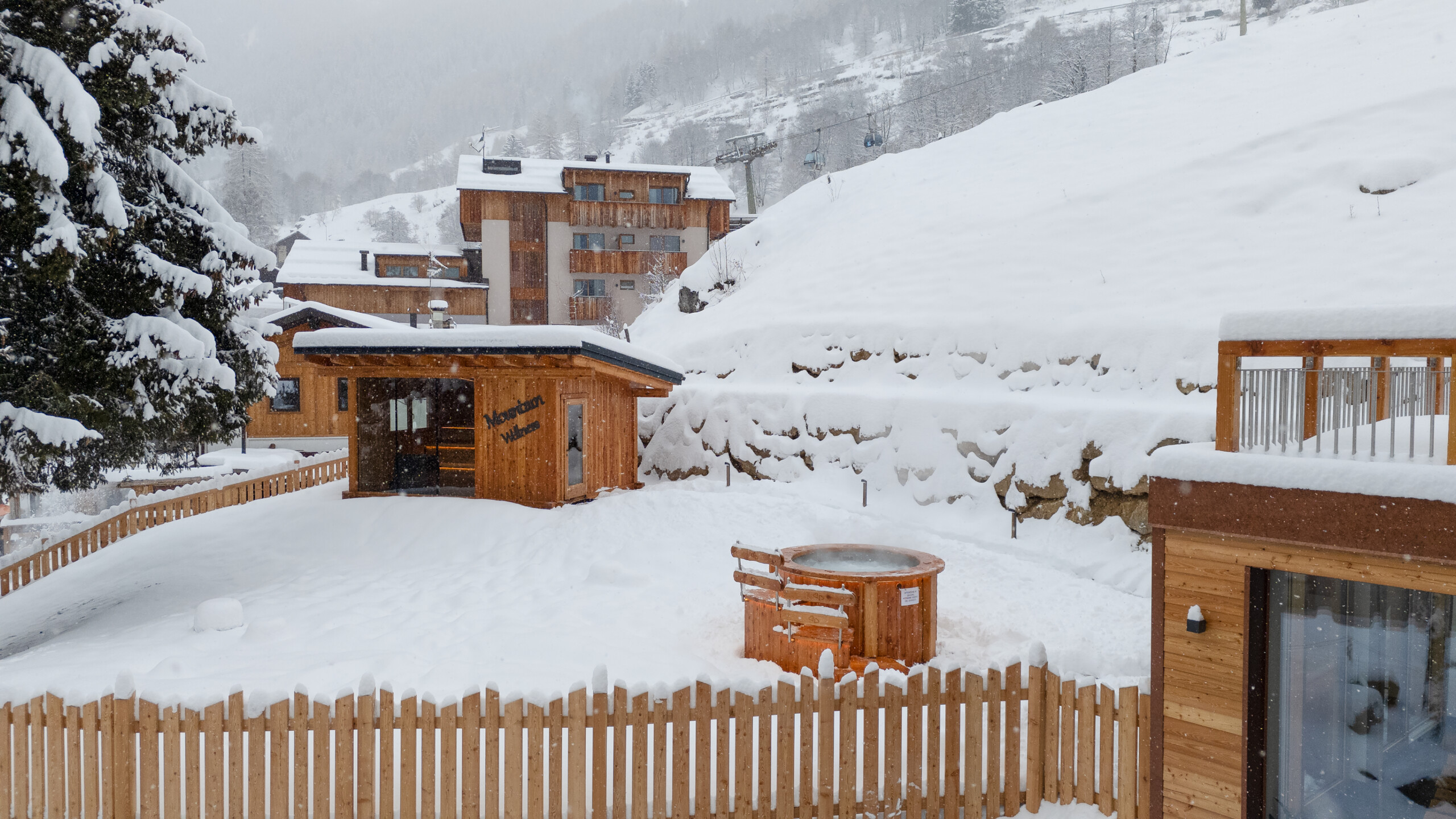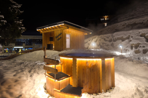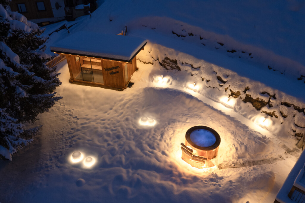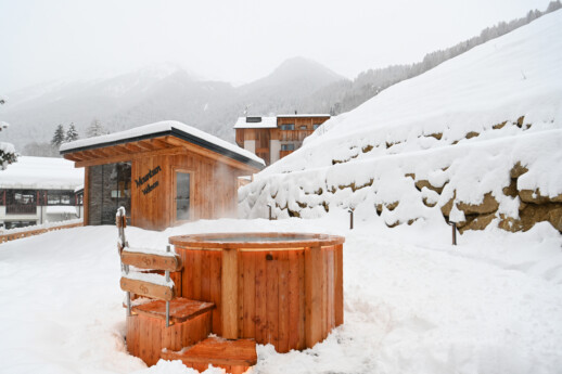 - Tinozza idromassaggio esterna: un’esperienza unica sotto il cielo alpino, immersi nell’acqua calda con vista sulle montagne.